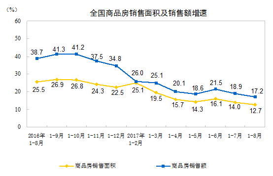 2017年1-8月份全國(guó)房地產(chǎn)開(kāi)發(fā)投資和銷(xiāo)售情況