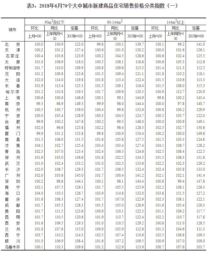 2018年6月份70個大中城市住宅銷售價格變動情況