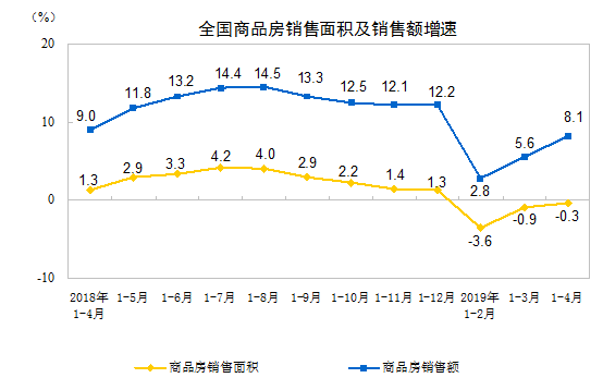 2019年1-4月份全國房地產(chǎn)開發(fā)投資和銷售情況