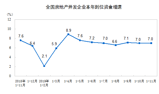2019年1-11月份全國房地產(chǎn)開發(fā)投資和銷售情況